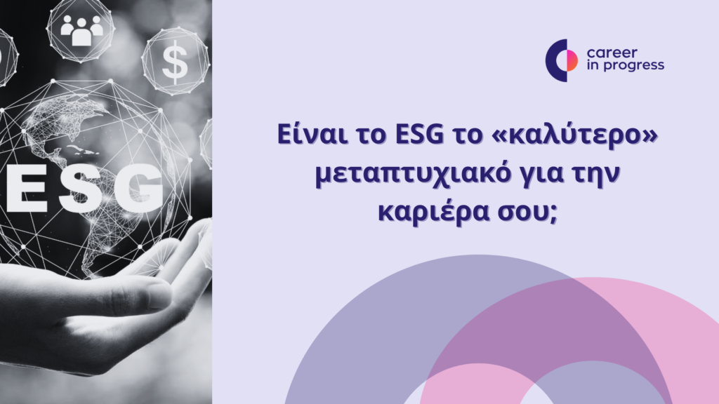 Έτσι, στην σύγχρονη των υπεύθυνων επενδύσεων, της εταιρικής υπευθυνότητας και της βιώσιμης ανάπτυξης, παρατηρούμε ότι το ESG — Environmental, Social and Governance — έχει γίνει ένα από τα πιο δημοφιλή πεδία εξειδίκευσης στον κόσμο της επιχειρηματικότητας και των χρηματοοικονομικών. Πολλοί φοιτητές και επαγγελματίες αναρωτιούνται αν ένα μεταπτυχιακό ή εξειδίκευση στο ESG είναι η καλύτερη επιλογή για την καριέρα τους.