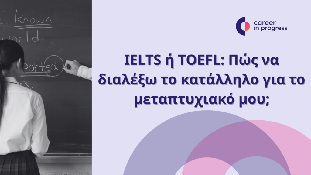 Η επιλογή μεταξύ IELTS και TOEFL είναι κρίσιμη για την πορεία σου στο μεταπτυχιακό. Το σημαντικό είναι να γνωρίζεις τις απαιτήσεις του τμήματος που σε ενδιαφέρει, να διαλέξεις το τεστ που ταιριάζει στο προσωπικό σου στυλ και να προετοιμαστείς στρατηγικά.