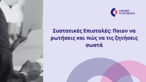 Η Career In Progress είναι η μοναδική εταιρεία διαχείρισης σταδιοδρομίας στην Ελλάδα που προσφέρει συμβουλευτικές υπηρεσίες σε υποψηφίους, φοιτητές, μαθητές και εταιρίες.